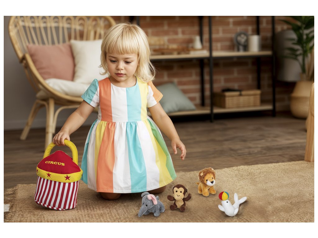 Roztomilý plyšový set pro nejmenší, který rozvíjí hmat, představivost i jemnou motoriku. Bezpečný, měkký a ideální na doma i na cesty.