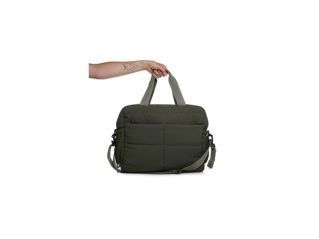 Univerzální a praktická taška, kterou můžete nosit třemi způsoby: přes rameno, v ruce nebo připevněnou na kočárku pomocí dvou popruhů. Prošívaný design dodává elegantní a módní vzhled, který se hodí ke každému outfitu.