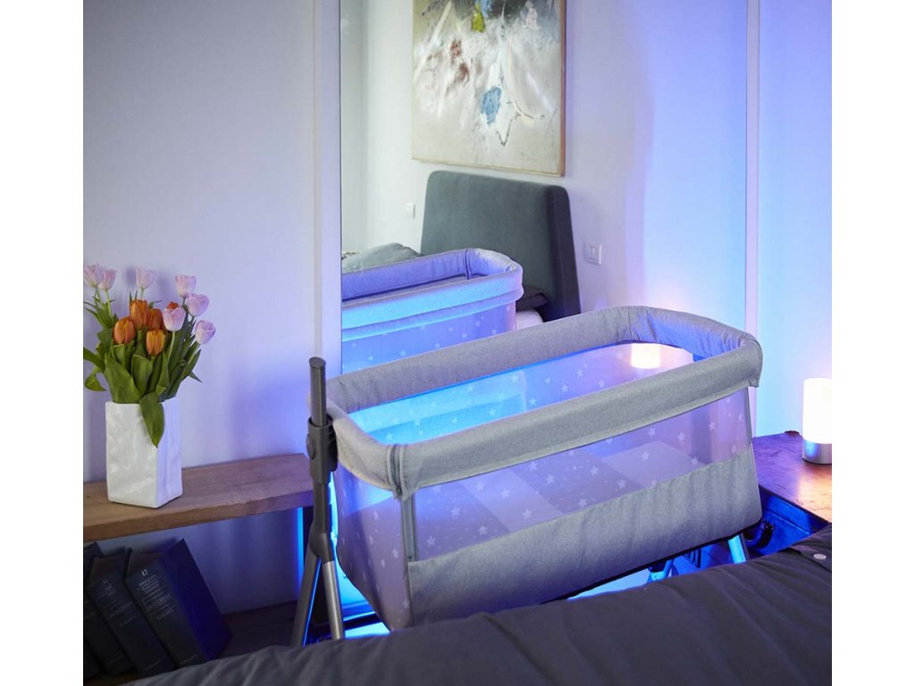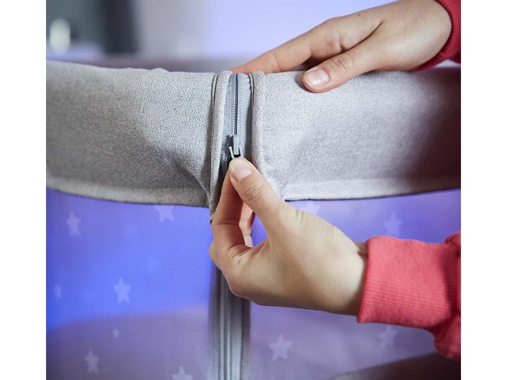 Díky odepínatelné bočnici a možnosti polohování do 8 pozic postýlku snadno přistavíte k jakékoliv posteli.