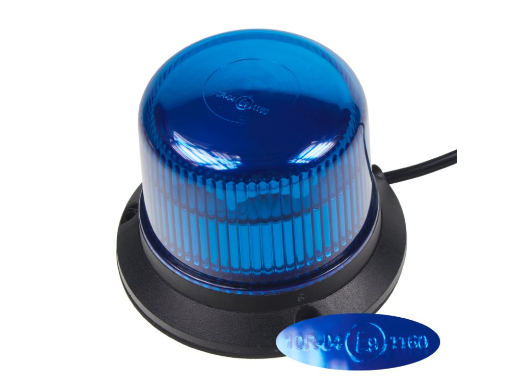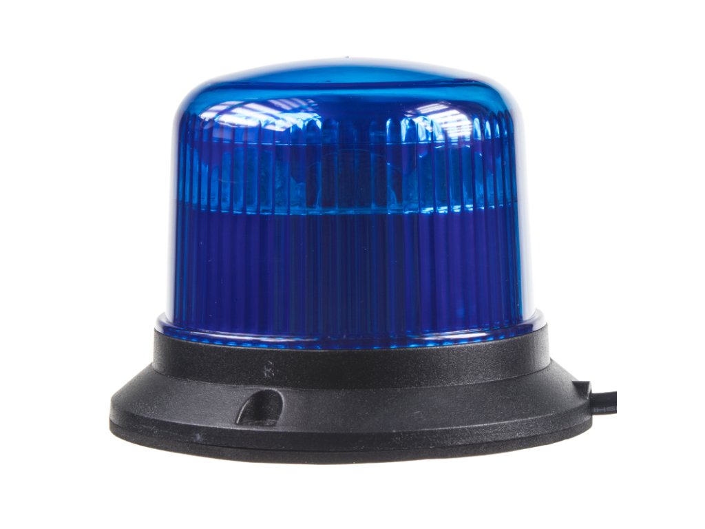 Profesionální modrý LED maják s výrazným výstražným efektem, speciální optika. Určen pro pevnou montáž.