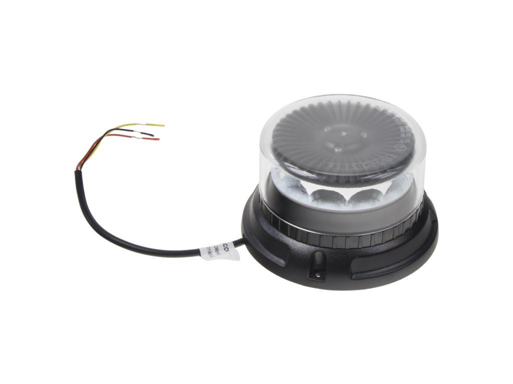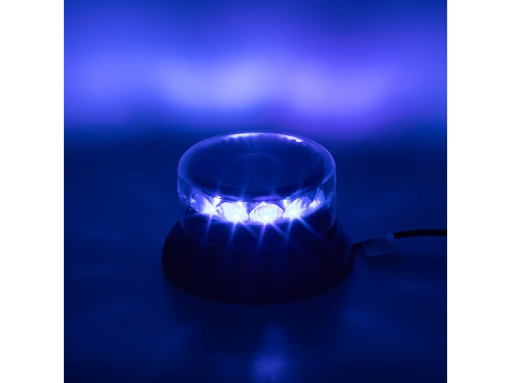 Profesionální modrý LED maják s čirým krytem a s výrazným výstražným efektem, speciální optika na bázi fresnelových čoček. Určen pro pevnou montáž.