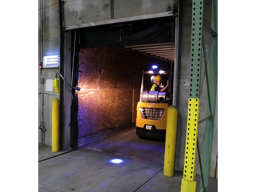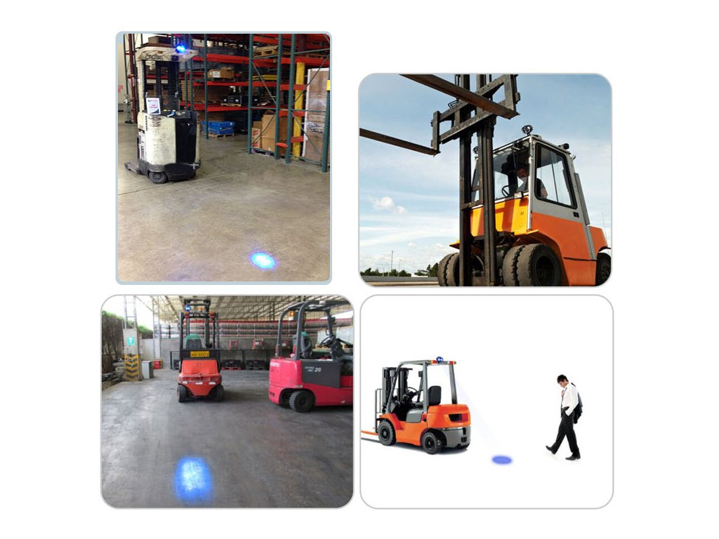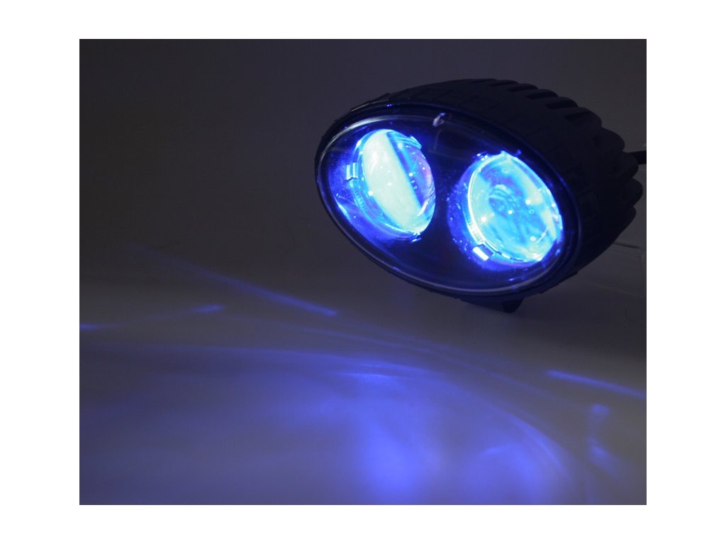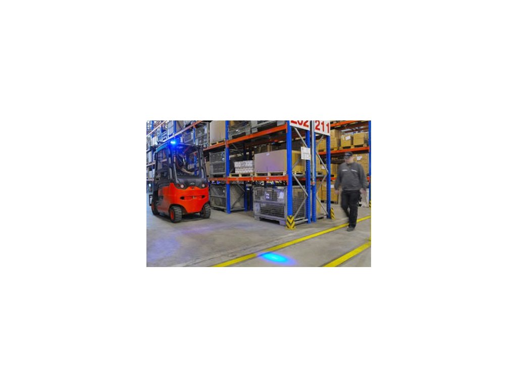 Přídavné modré bodové výstražné LED světlo pro externí montáž. Světlo je určeno např. pro montáž na vysokozdvižné vozíky, poté upozorňuje na pohyb vozíku modrým bodem na zemi před vozíkem.