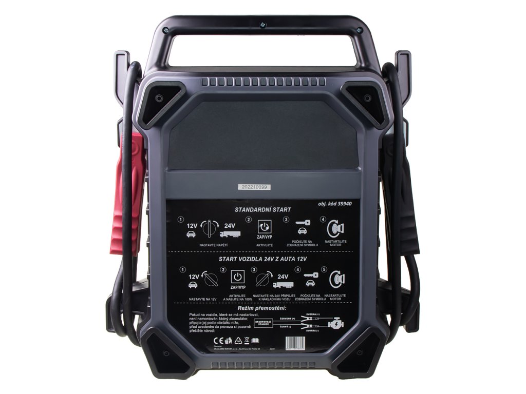 Profesionální, výkonný a multifunkční jump starter je pomocné startovací zařízení, které je ideálním pomocníkem pro nouzové startování osobních i nákladních vozidel a lodí s vybitou nebo vadnou autobaterií. Stačí připojit svorky k autobaterii / startéru, počkat cca 3 - 4 minuty a motor můžete nastartovat.
