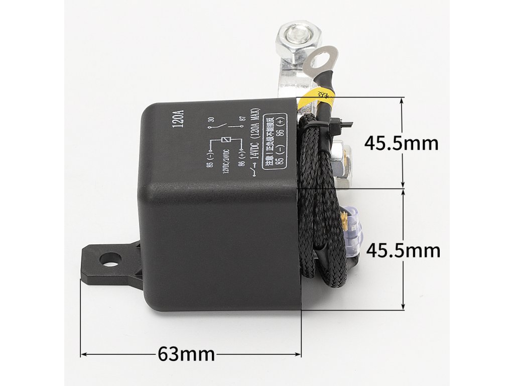 Speciální dálkově ovládané relé, které je určené ke spínání druhé přídavné baterie ve vozidle. Proudová zatíženost 120A při 12V.