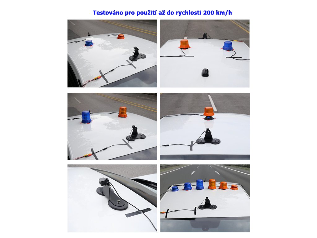 Testováno pro použití s magnetem až do rychlosti 200 km/h za podmínek umístění na čistou a suchou plochu střechy.