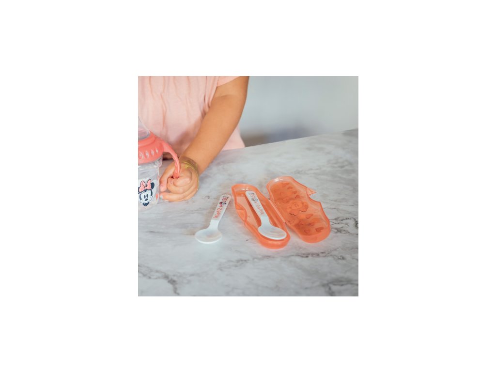 Barevný a veselý design s oblíbenou Minnie vzbudí zvědavost dítěte a promění stolování v příjemnou a zábavnou chvíli. Každý prvek je snadno uchopitelný a podporuje dítě při učení samostatnosti. Materiály jsou bezpečné, odolné a snadno omyvatelné, vhodné pro každodenní použití doma i na cestách.