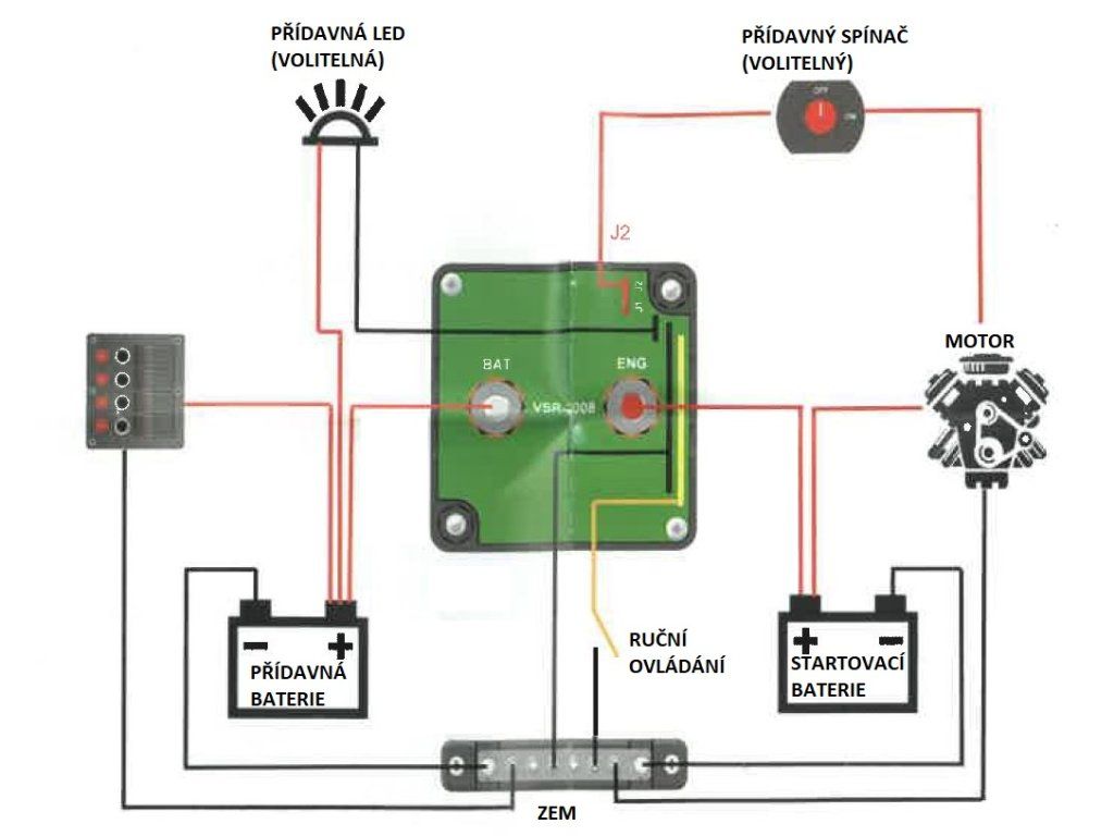 • odpojení relé při poklesu napětí pod 12,8 V