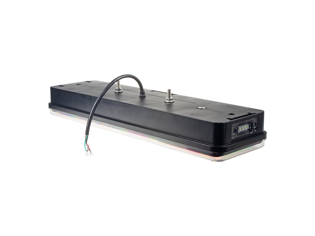 Sdružená LED lampa pravá zadní s dynamickými blinkry 12/24 V Technické parametry • napájení: 12/24 V • dynamická směrová světla • odrazový element - trojúhelník • směrové (84x LED), brzdové (96x LED), poziční (78x LED), couvací (3x LED), mlhové (3x LED), osvětlení SPZ (4x LED) ...