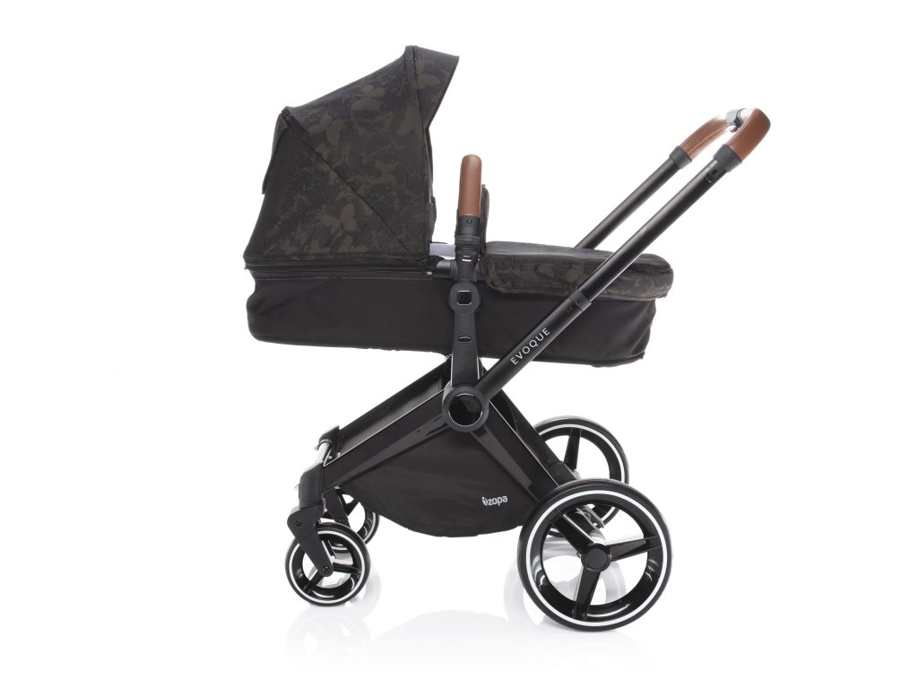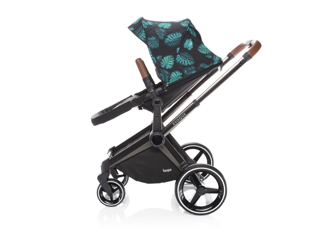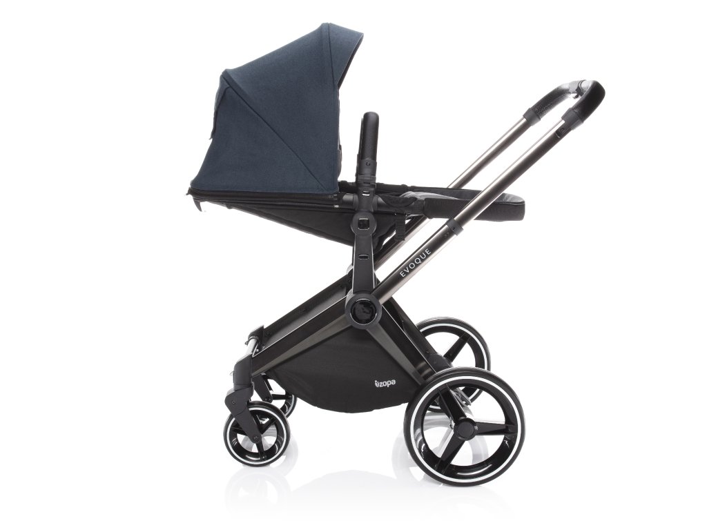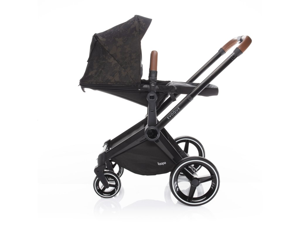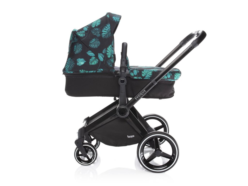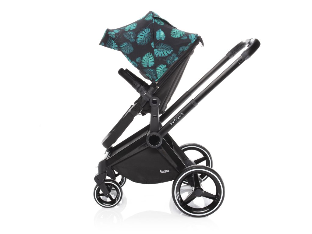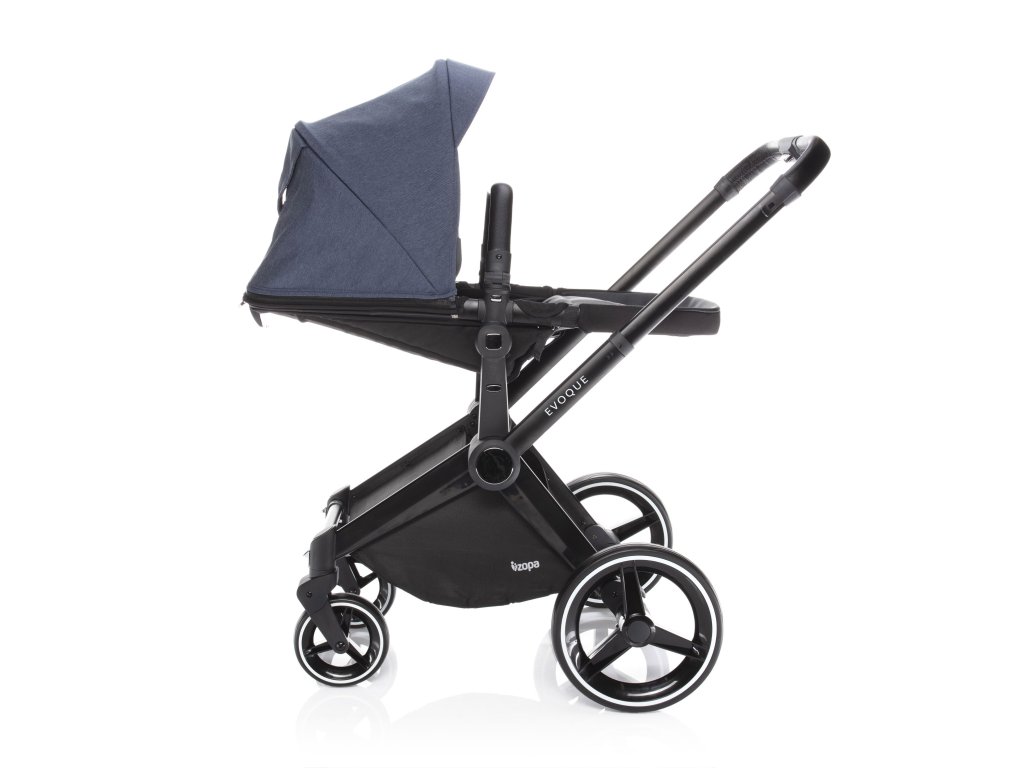 Kočárek Zopa Evoque je designový ale zároveň praktický kočárek pro děti od narození do 15 kilogramů. Jedná se o dvojkombinaci, kdy se z rámu prostorné, hluboké korby vytvoří sportovní sezení. Sportovní sedačka je polohovatelná a lze umísti po i proti směru jízdy. Dítě chrání pětibodový bezpečnostní pás.