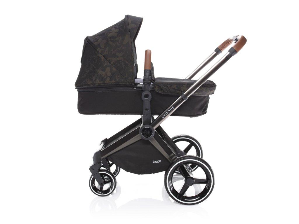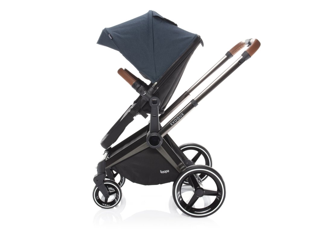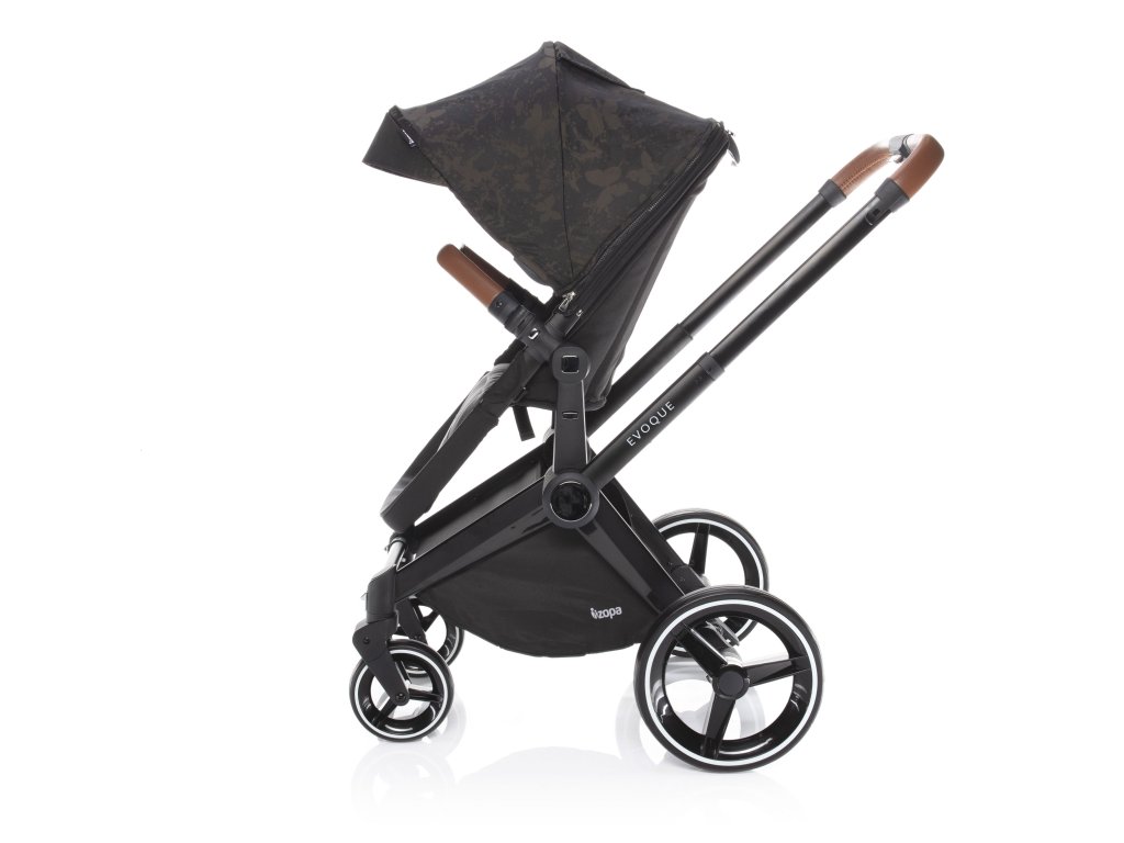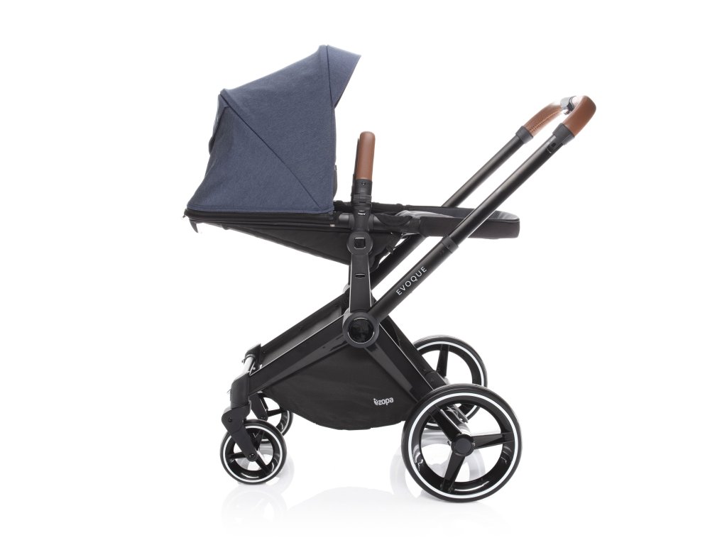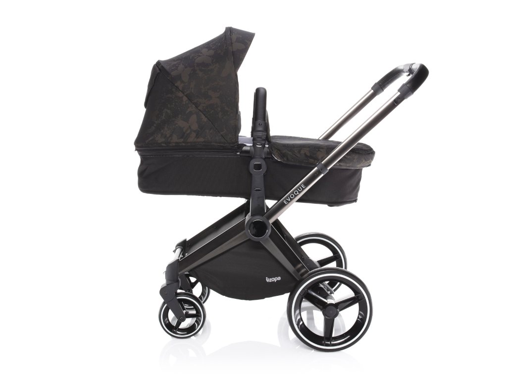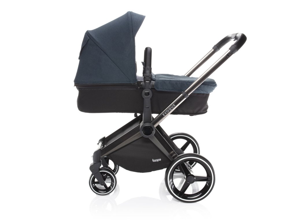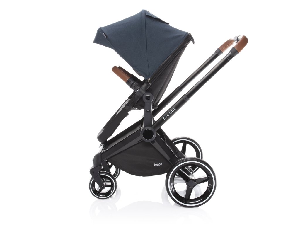 Kočárek Zopa Evoque je designový ale zároveň praktický kočárek pro děti od narození do 15 kilogramů. Jedná se o dvojkombinaci, kdy se z rámu prostorné, hluboké korby vytvoří sportovní sezení. Sportovní sedačka je polohovatelná a lze umísti po i proti směru jízdy. Dítě chrání pětibodový bezpečnostní pás.