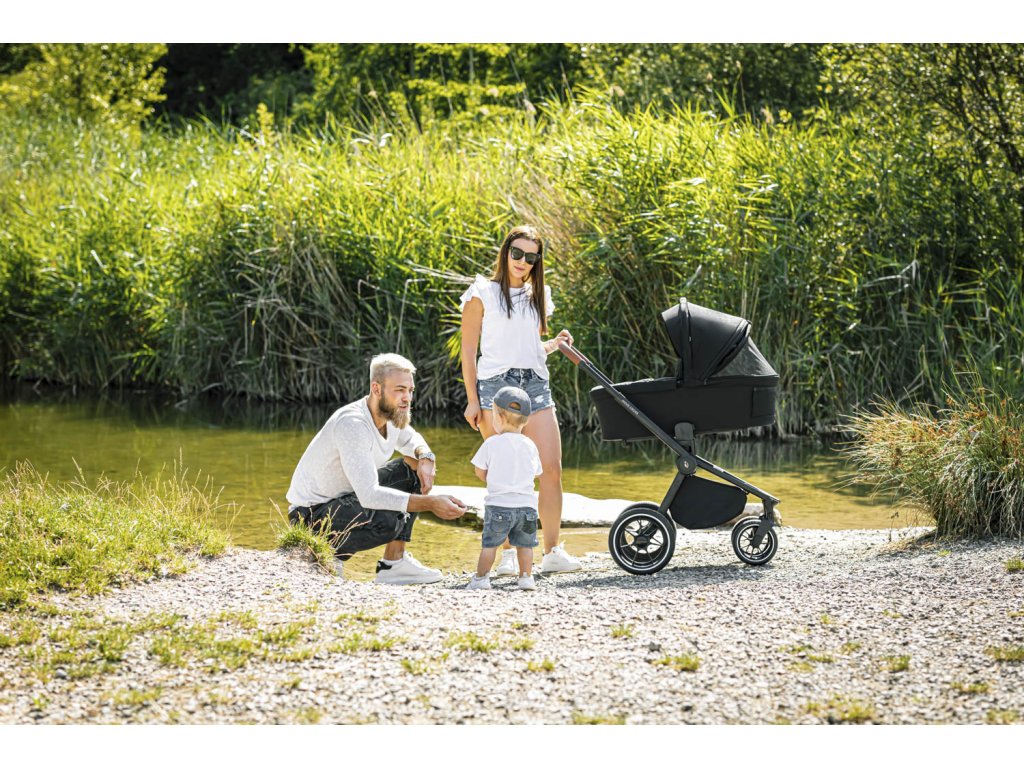 Výškově nastavitelná rukojeť zajistí, že kočárek mohou pohodlně vozit všichni členové rodiny bez ohledu na jejich výšku.