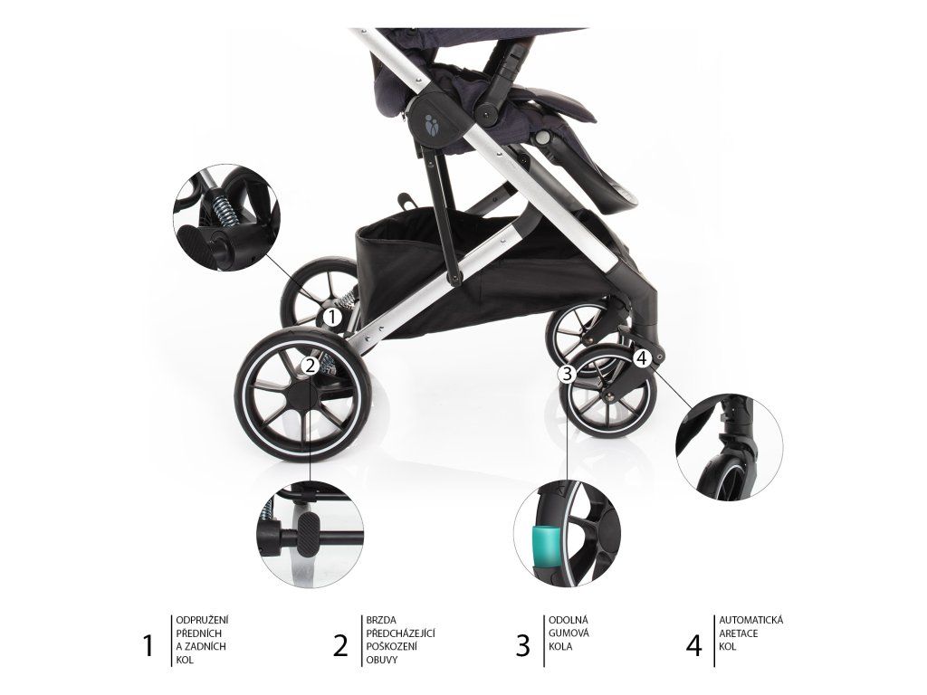 Dítě může jezdit po i protisměru jízdy. V obou směrech lze kočárek