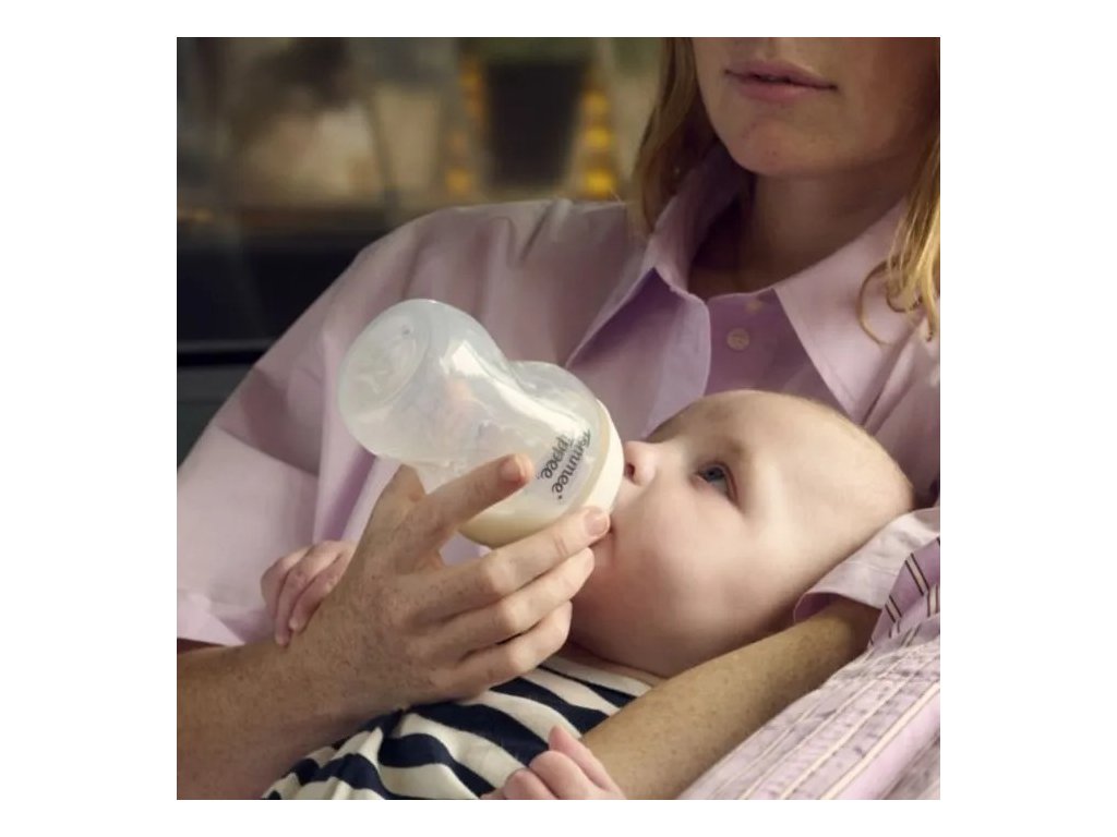 Kojenecká lahvička Tommee Tippee Closer to Nature s unikátní silikonovou savičkou, která svým tvarem a vlastnostmi připomíná mateřský prs. Teplou tekutinou uvnitř lahvičky se savička zahřeje na příjemnou teplotu, měkký a pružný konec savičky připomíná mateřskou bradavku. Dítě tak téměř nepociťuje rozdíl mezi kojením a krmením z této lahvičky.