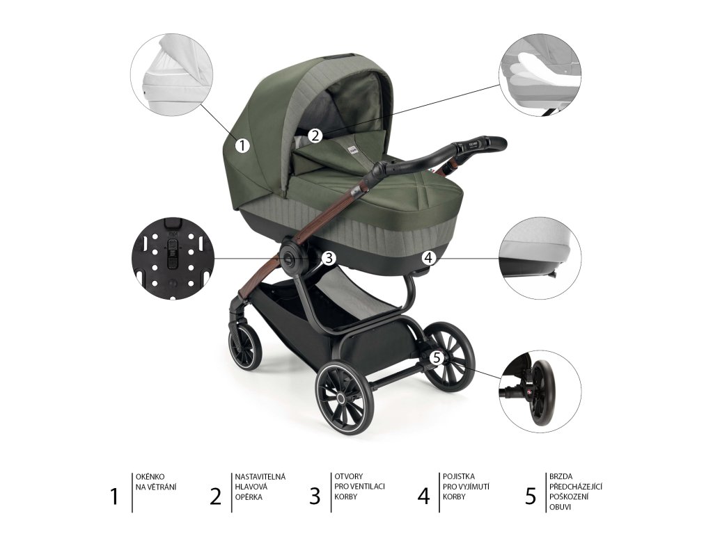 Díky bohatému polstrování se bude vaše dítě v hluboké korbě cítit komfortně a v bezpečí. V letních měsících oceníte propracovaný systém odvětrávání, který zaručí, že uvnitř korby bude i ve velkém teplu stálá přijatelná teplota. Houpací základna v kombinaci s měkkou matrací napomáhá vašemu dítěti k rychlému usnutí.