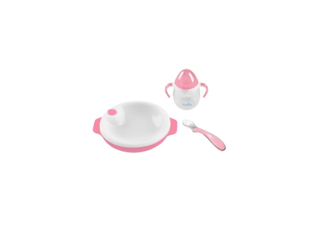Set termotalířku s silikonovou lžičkou a hrnečkem, Pastel pink