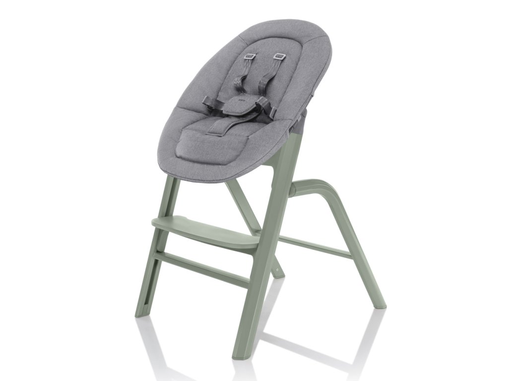Novorozenecký set je určen pro miminka od narození do 9 kg. Umožňuje nastavení sklonu zádové opěrky až do lehu, má měkké a prodyšné polstrování a pětibodový bezpečnostní pás. Miminko je tak vždy v pohodlí a bezpečí, zároveň je díky výšce židličky zapojeno do dění u rodinného stolu.