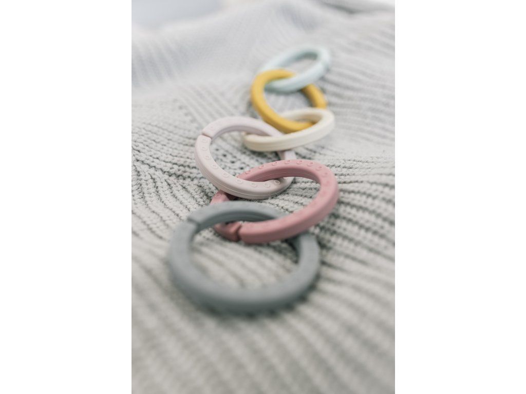 Svrchní část řetězu je vyrobena z bezpečného potravinářského silikonu, který je netoxický a odolný proti rozbití. Pro malé děti je silikon přirozenější než plast či kov.