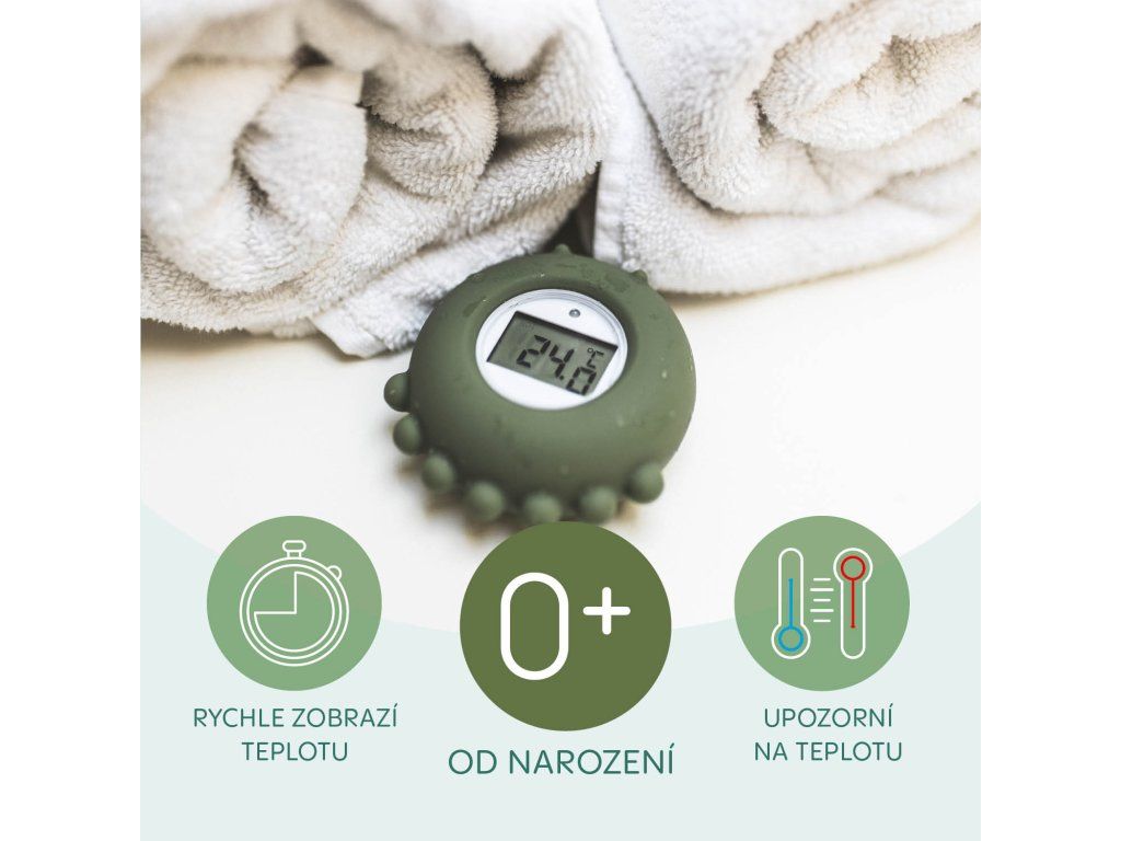Dopřejte svému miminku příjemnou a bezpečnou koupel s naším silikonovým digitálním teploměrem. Tento praktický pomocník plave na hladině a okamžitě zobrazuje přesnou teplotu vody na přehledném LCD displeji. Díky funkci 2v1 můžete také snadno sledovat teplotu v místnosti.