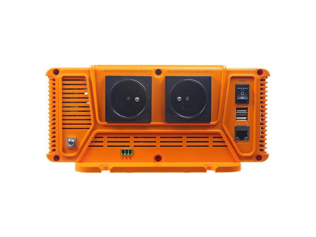 Tento měnič je navíc vybaven USB výstupy pro nabíjení USB zařízení (telefon apod.). Pomocí tlačítek lze nastavovat hodnoty funkcí: hodnotu nízkého napětí, kdy dojde k odpojení akumulátoru, hodnotu napětí obnovení, nastavení ochrany při přepětí, hodnota povoleného přetížení.