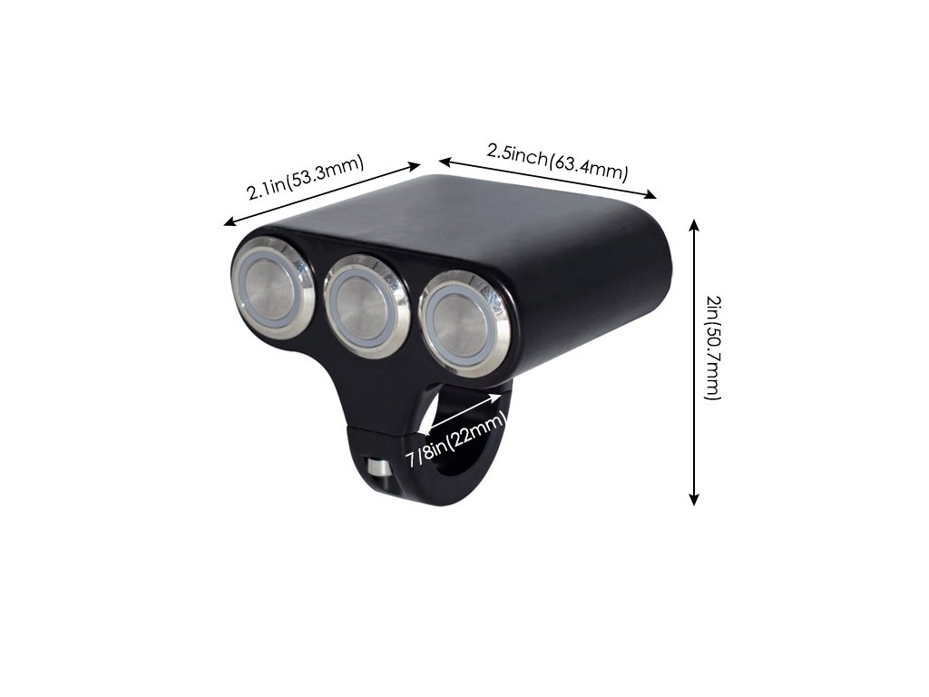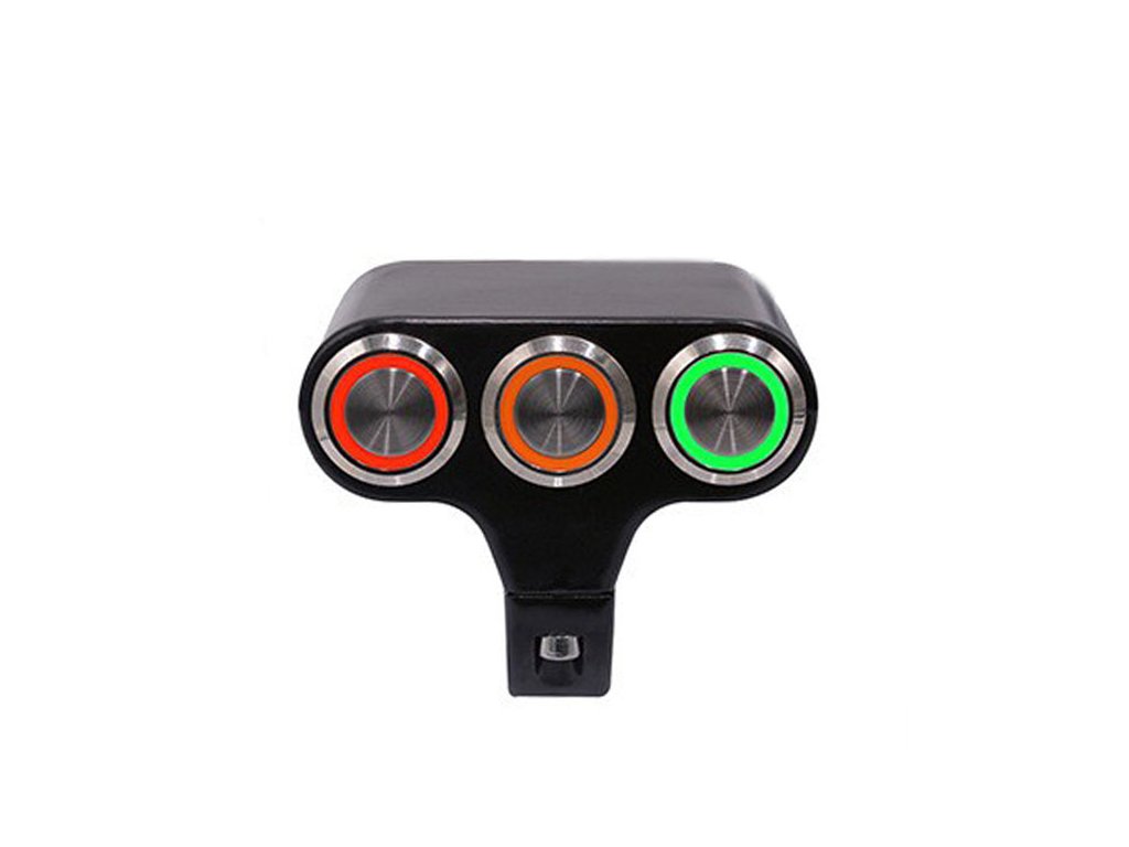 Sada 3 vodotěsných podsvícených spínačů světel/predátorů/zvukových systémů na motocykl nebo čtyřkolku.