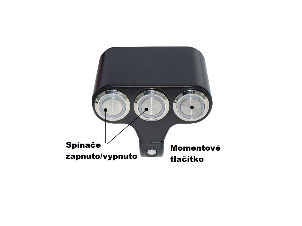 2 spínače slouží jako přepínač (ON/OFF), 3. spínač je tlačítko (sepnutý pouze při stisknutí).