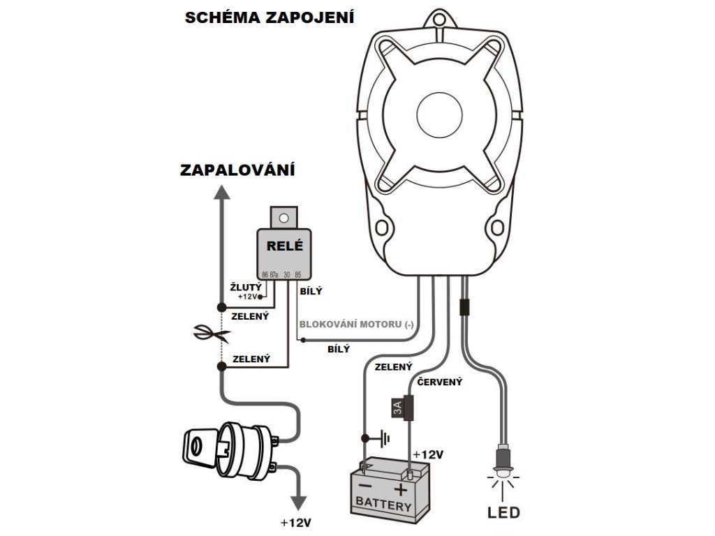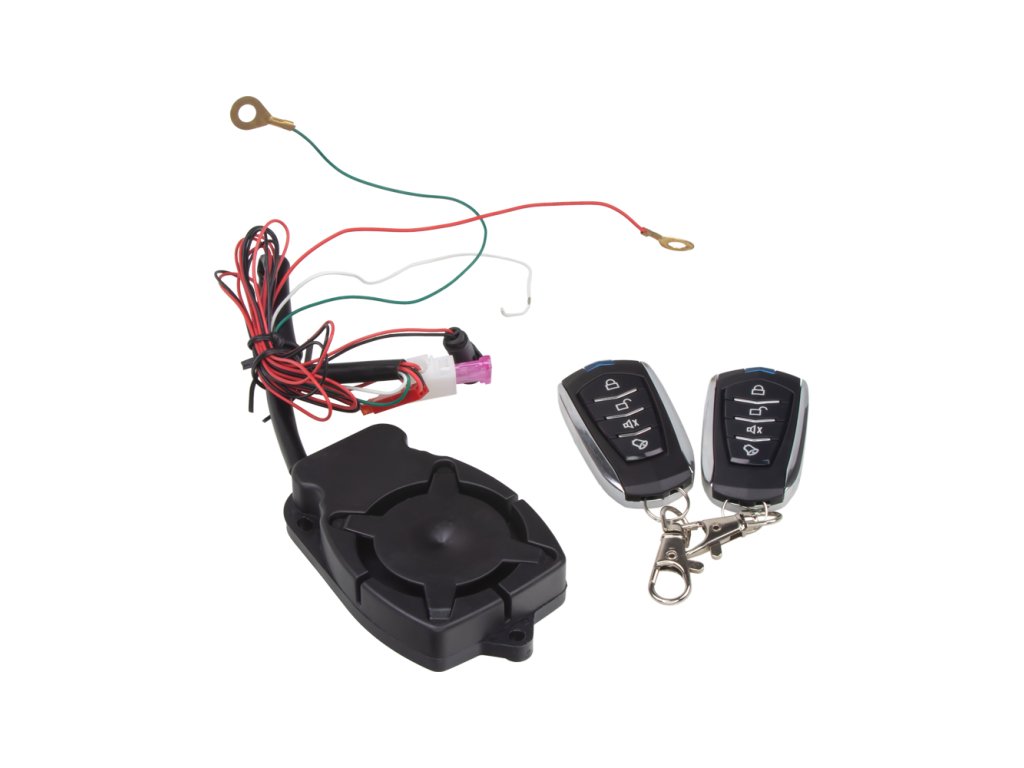 Alarm s dálkovým ovládáním určený především pro zabezpečení motocyklů, skútrů, čtyřkolek, zahradních traktorů či podobných vozidel s palubním napětím 12V.