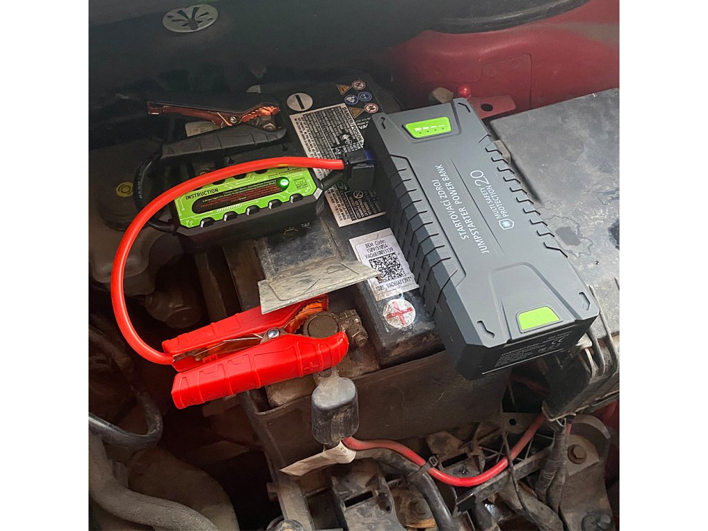 Integrovaný akumulátor 20 000mAh disponuje dostatečnou kapacitou pro několikanásobné nabití zařízení nebo nastartování auta.