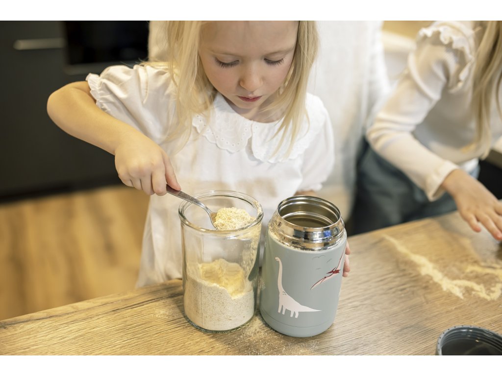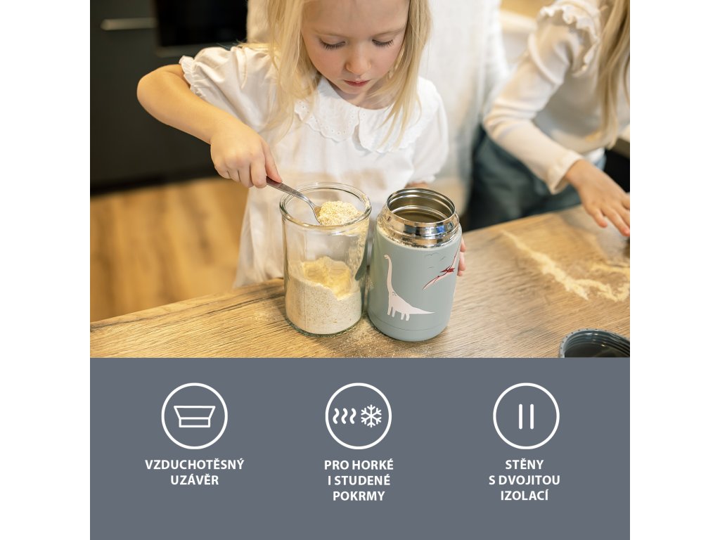 Nerezový materiál oproti plastovým krabičkám neabsorbuje vůně a je odolný vůči skvrnám. Navíc tekutina při přenášení nevyteče, tak jako to bývá u plastových obědových boxů, které dobře netěsní. Široký otvor usnadňuje dojídání, plnění či umývání termosky. Termoska udrží ovoce a zeleninu déle čerstvé. Používáním termosek na tekutiny pomáháte redukovat spotřebu plastů. Termosku myjte v ruce, není vhodná do myčky nádobí.