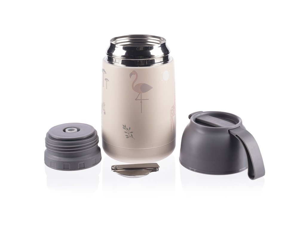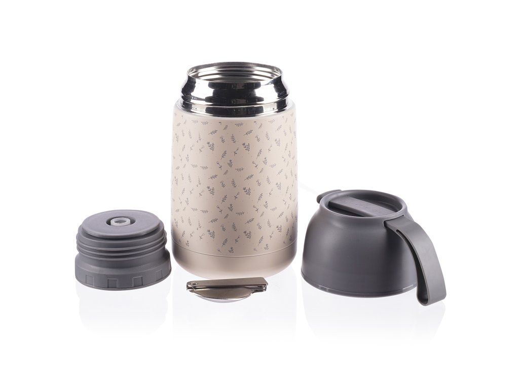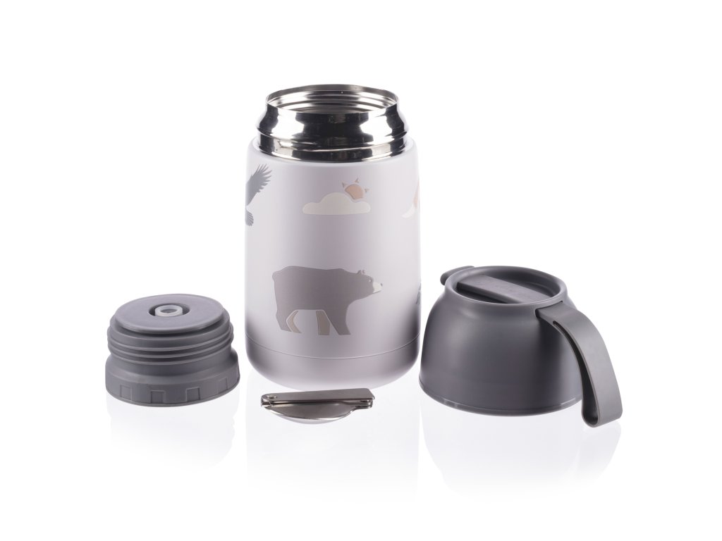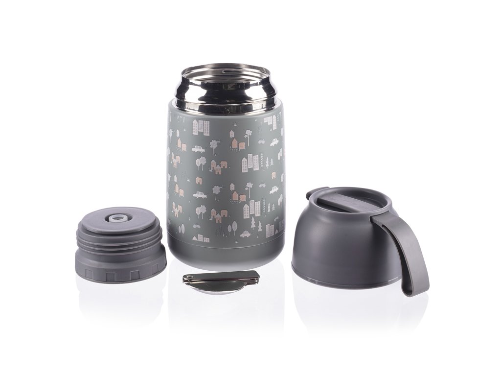 Součástí je chytrá skládací lžička, která skvěle pasuje do uzávěru a dítě si tak můžete dopřát teplou kaši nebo polévku kdekoliv. Víčko termosky lze použít jako hrníček či misku. Vrchní uzávěr je opatřen bezpečnostním ventilem, ten uvolní nadbytečný vzduch tvořící tlak. Díky uvolnění stlačeného vzduchu lze nádobu snadno otevřít a předchází se případnému opaření párou.