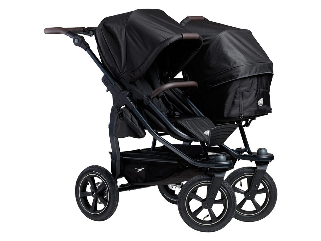 Konstrukce kočárku duo2 je větší, lehčí, odpruženější, lépe ovladatelná. Snadno na ni nacvaknete nový model hluboké korby duo2 combi, nebo sportovní sezení stroller seats duo2. Lze mít separátně dvě korby, nebo dva sedáky pro dvojčátka, anebo kombinaci korba a sedák pro sourozence.