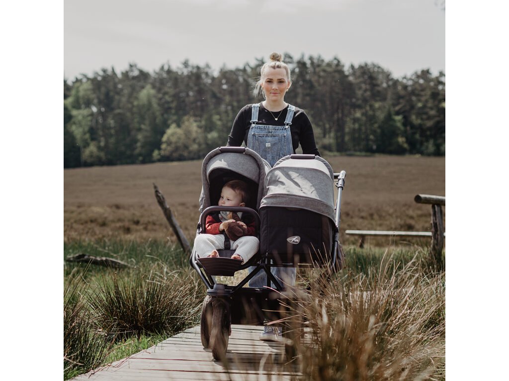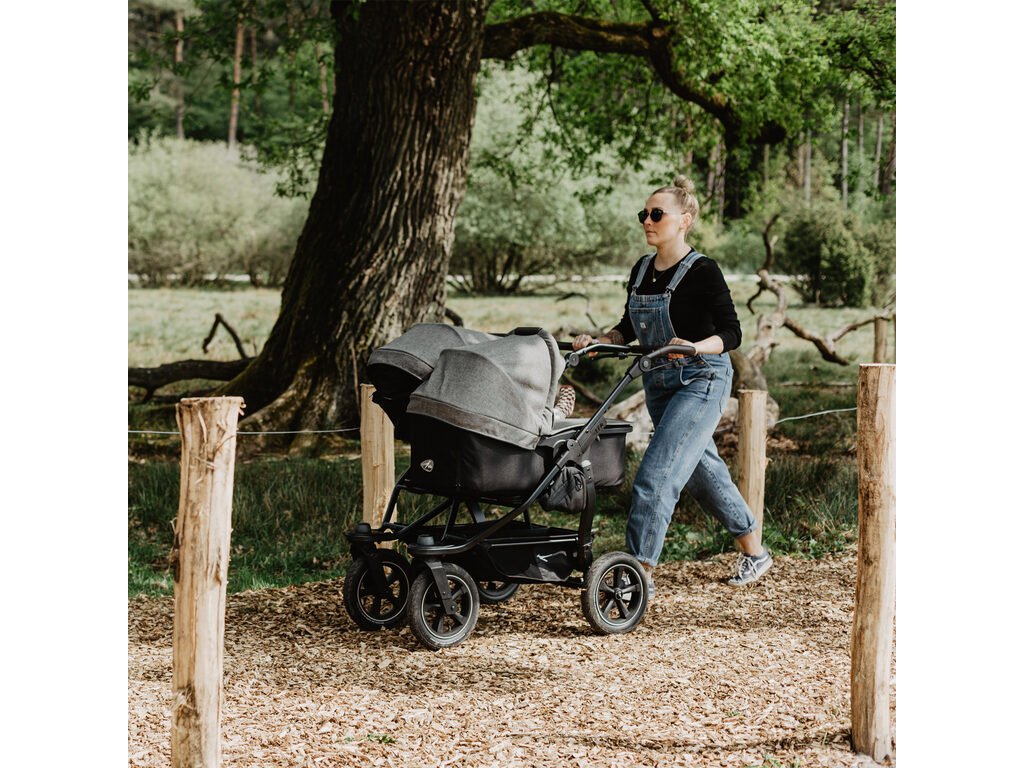 Konstrukce kočárku duo2 je větší, lehčí, odpruženější, lépe ovladatelná. Snadno na ni nacvaknete nový model hluboké korby duo2 combi, nebo sportovní sezení stroller seats duo2. Lze mít separátně dvě korby, nebo dva sedáky pro dvojčátka, anebo kombinaci korba a sedák pro sourozence.