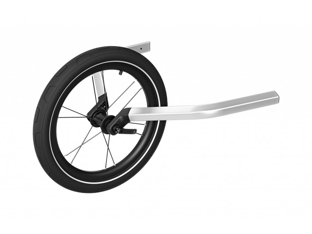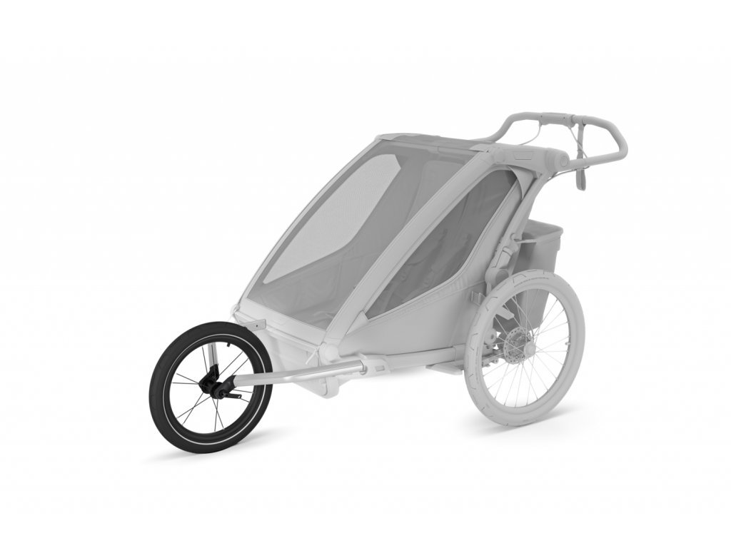 Výhodný set modulárního vozíku za kolo a kočárek v černé barvě s jogging kit 2, který přemění váš dětský vozík Thule Chariot na vysoce výkonný sportovní kočárek pro kondiční běh.