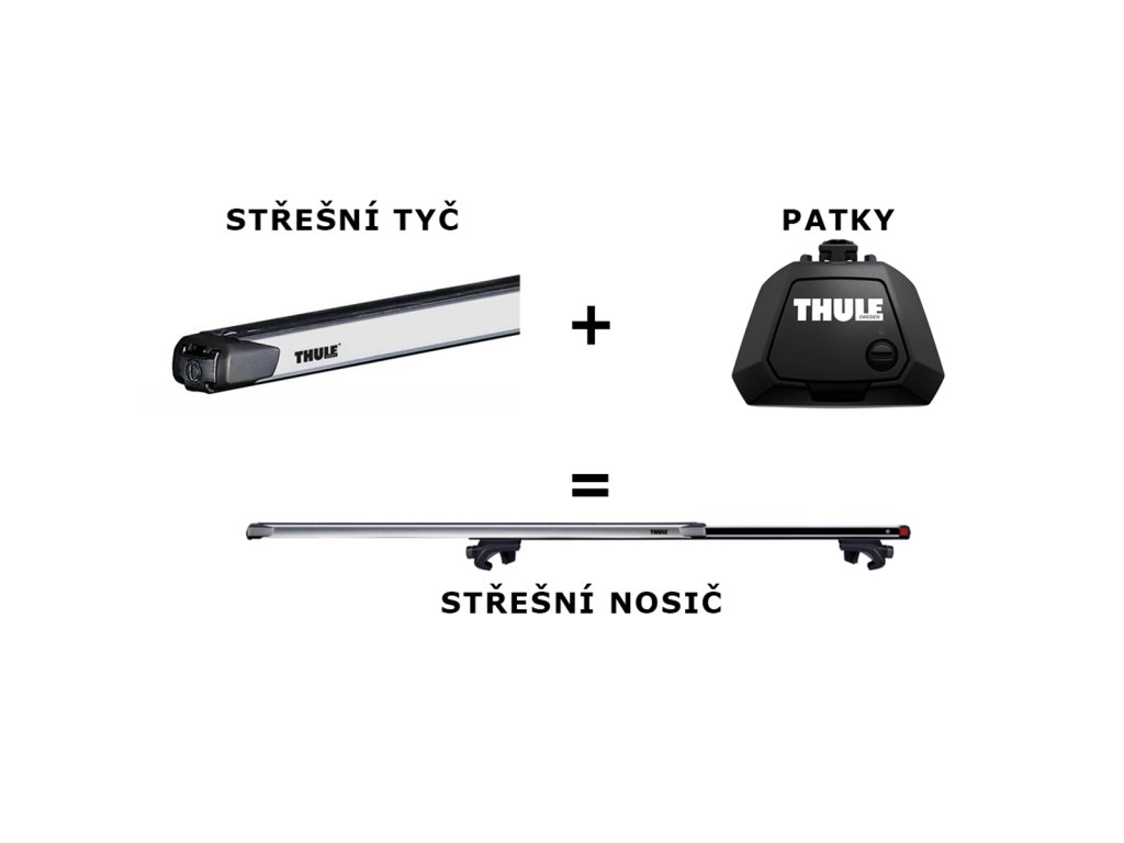 Kompletní uzamykatelný hliníkový střešní nosič s T-drážkou THULE na auto.