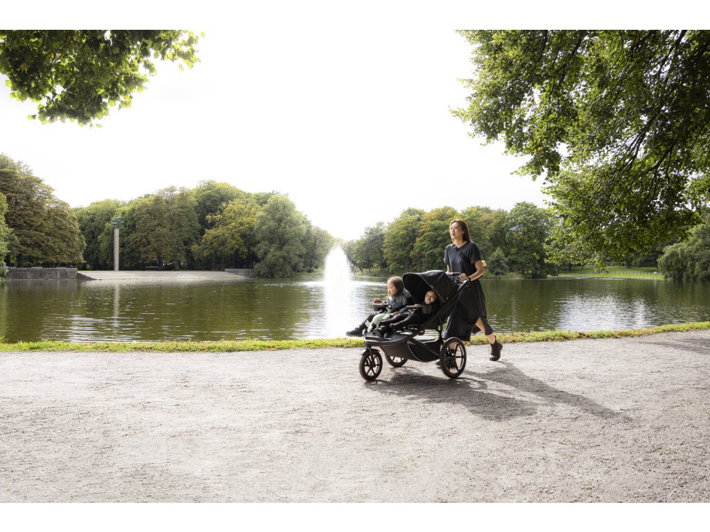 Díky vylepšené konstrukci je možné využívat 2 madla zároveň, madlo ke kočárku najdete v příslušenství.