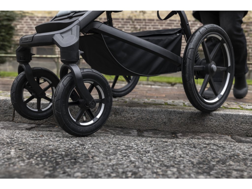 Vyzkoušejte vynikající odpružení pneumatik plněných vzduchem, které zajišťují hladkou jízdu i přes vysoké městské obrubníky nebo lesní cesty. Kočárek Thule Urban Glide se 4 koly je navržen tak, aby se dokázal přizpůsobit a skvěle fungovat – od zpevněných městských ulic až po drsnou přírodu.