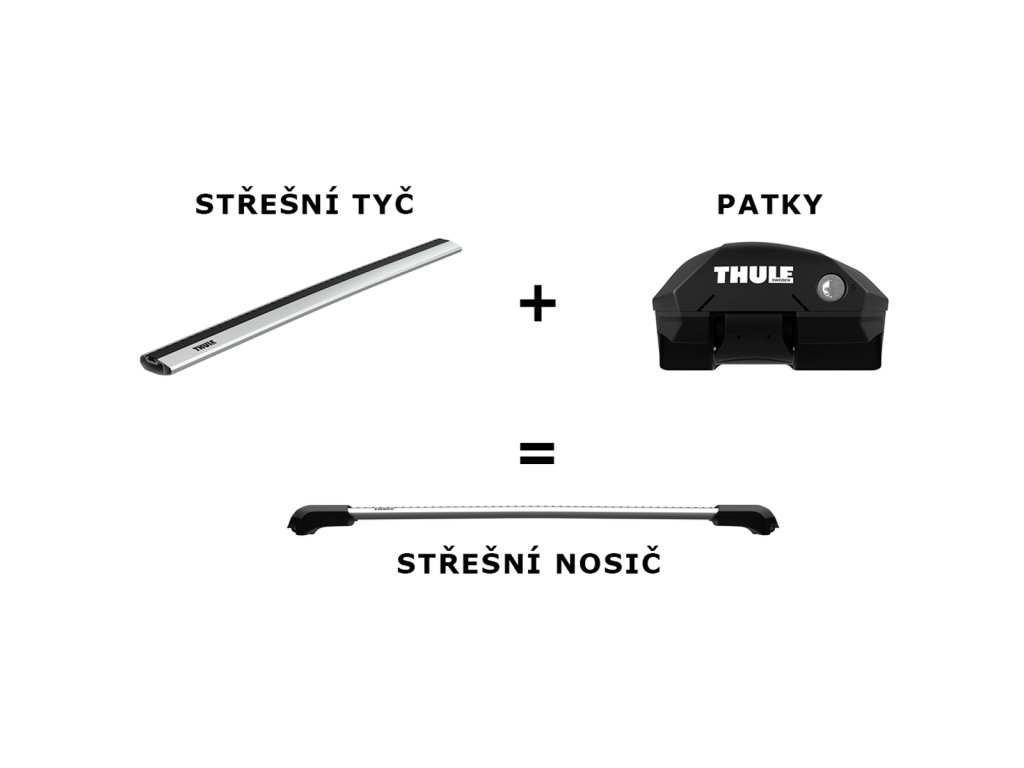 Kompletní uzamykatelný hliníkový aerodynamický střešní nosič s T-drážkou THULE na auto.