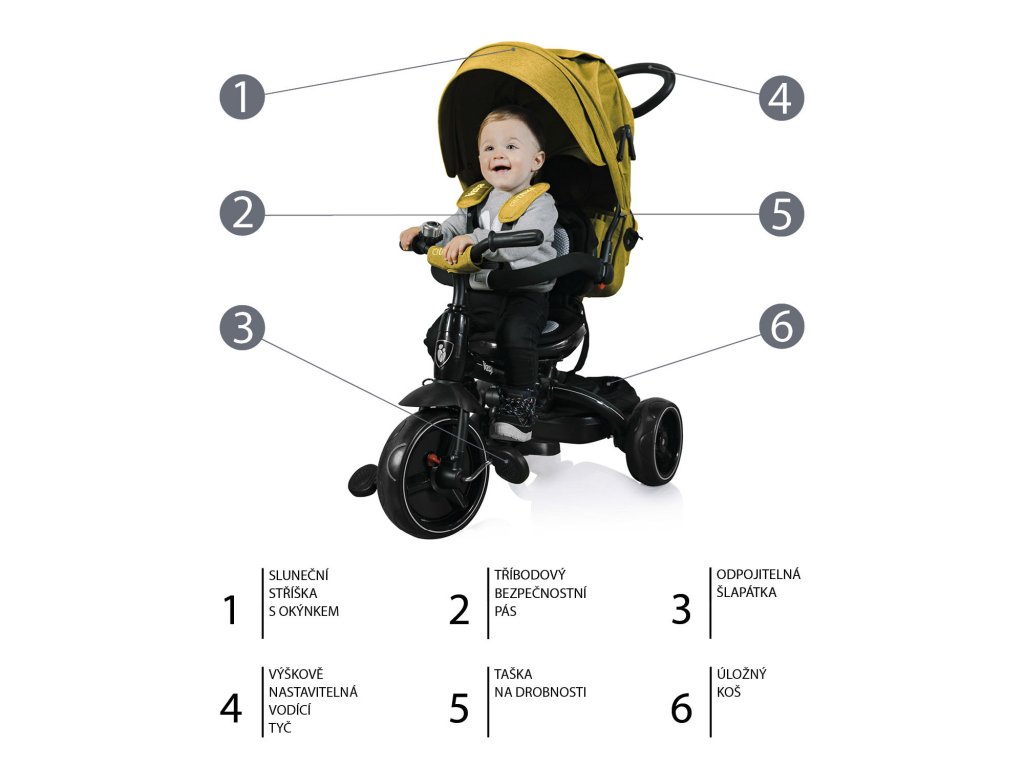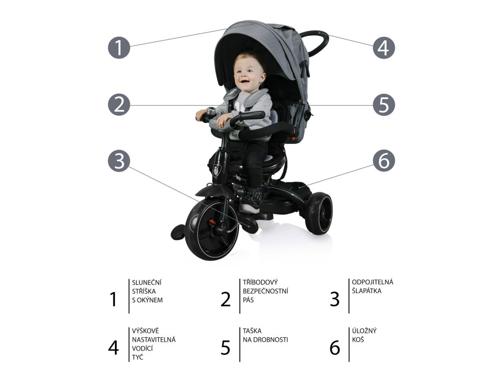 • Možnost odpojení šlapátek, když rodič tlačí tříkolku