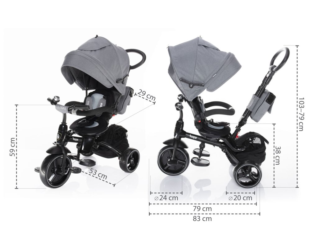 • Demontáž sluneční stříšky, hrazdy, přední opěrky a pedálů umožní dítěti lepší požitek z jízdy