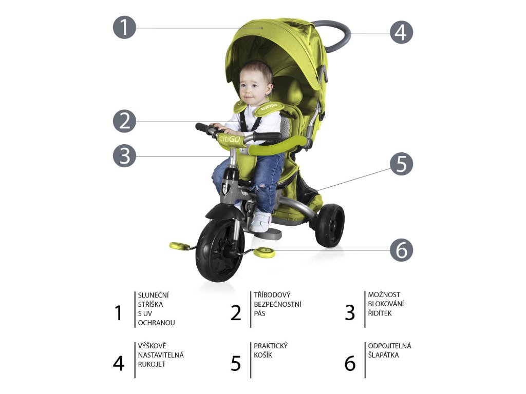 - Možnost odpojení šlapátek, když rodič tlačí tříkolku
