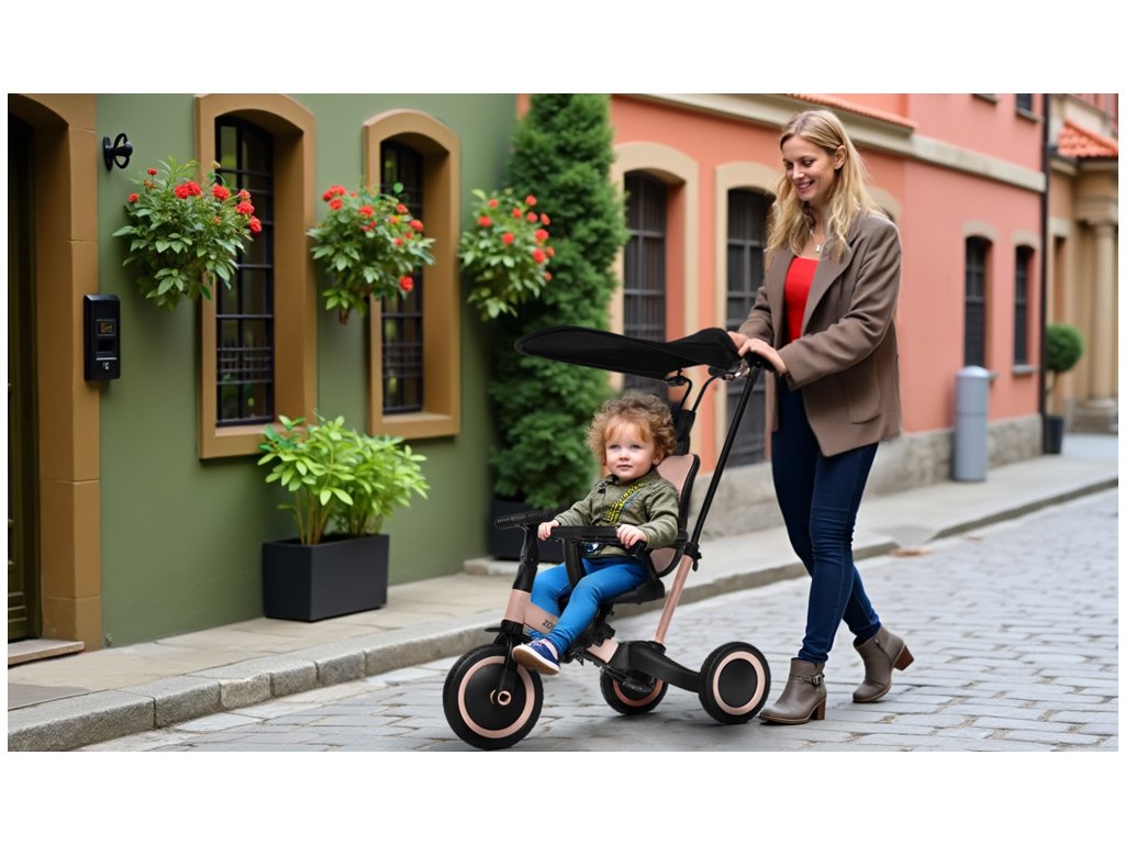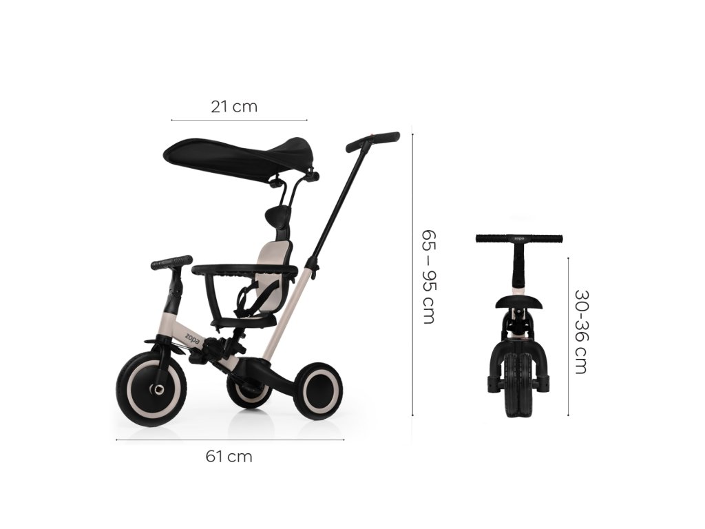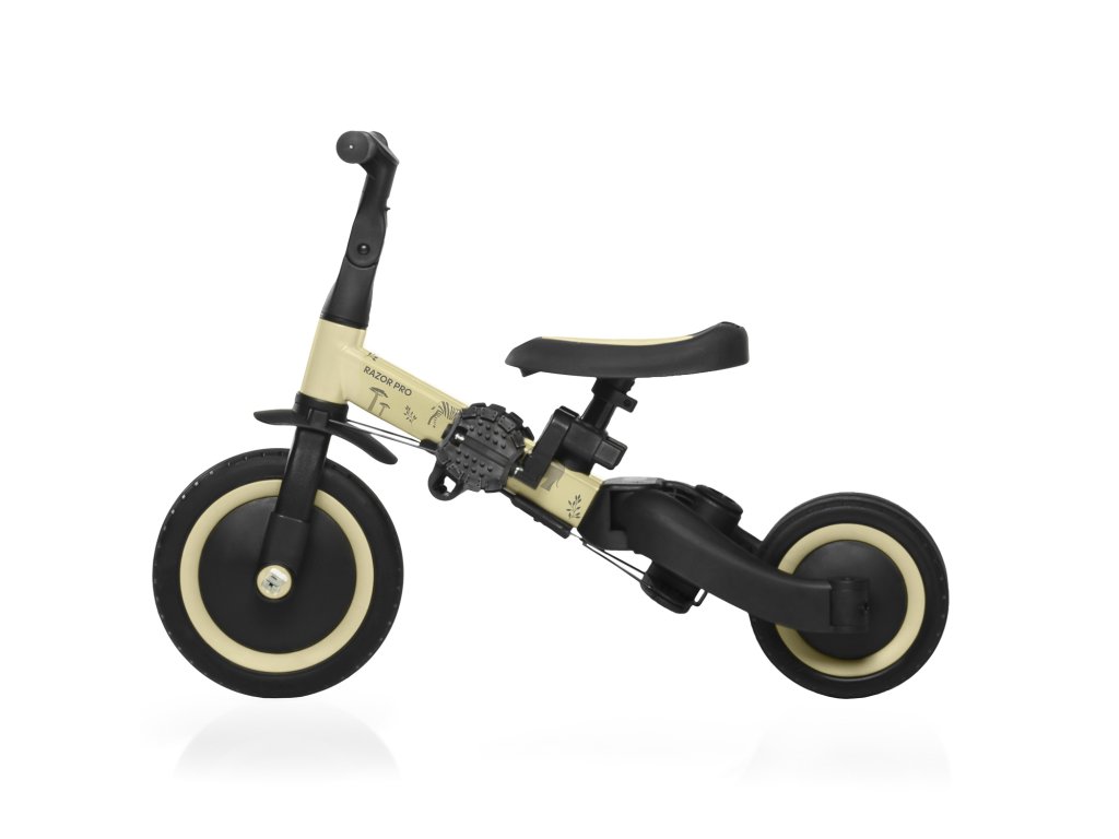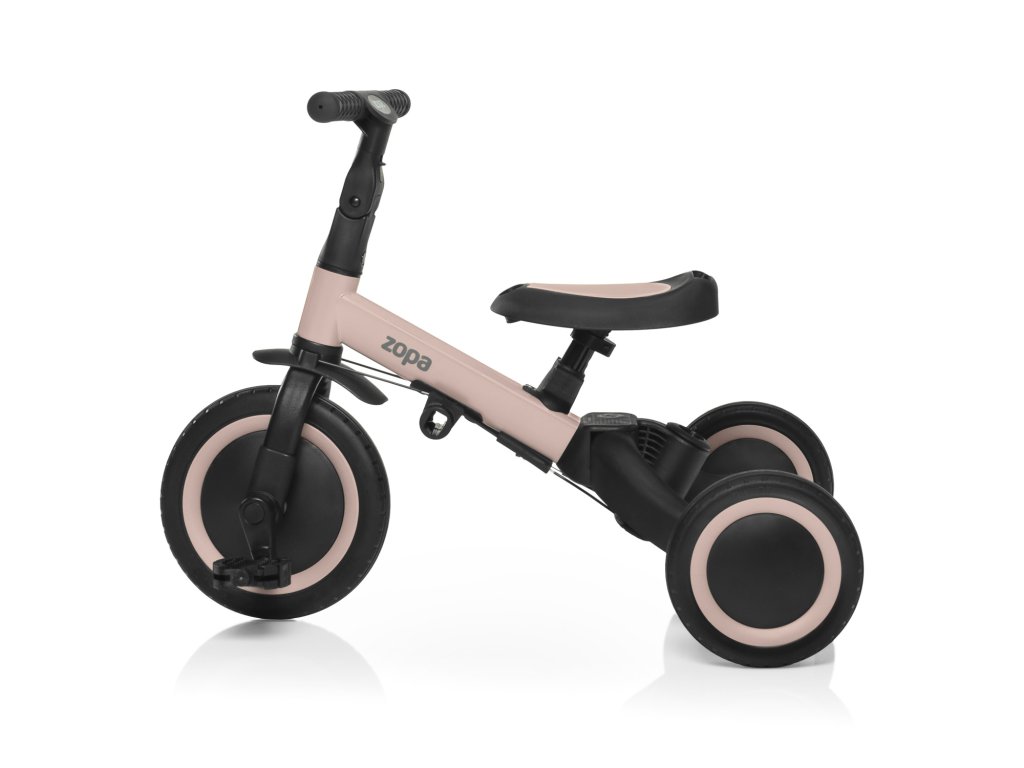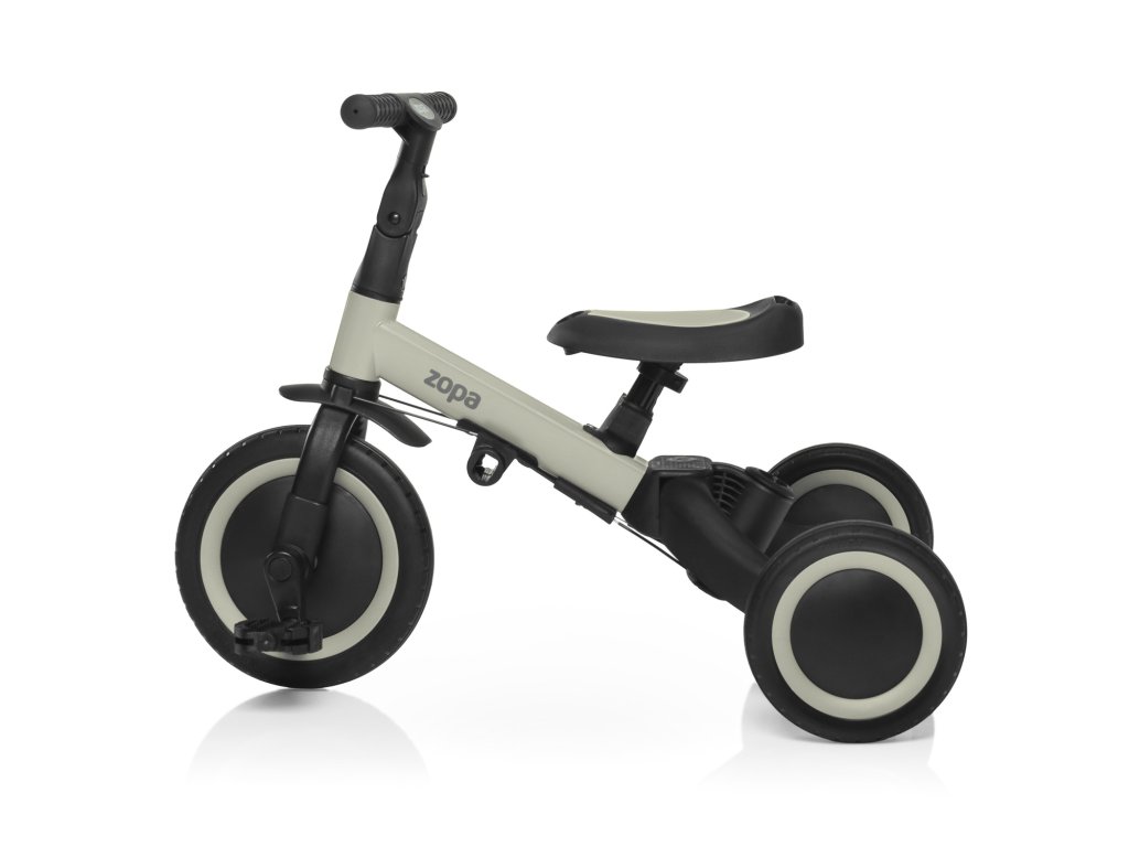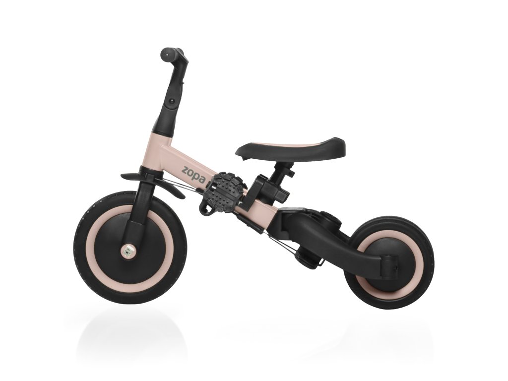 Díky chytré konstrukci lze jednotlivé části jednoduše odejmout nebo přestavět – bez potřeby nářadí. Přechod z tříkolky na odrážedlo nebo kolo je otázkou několika minut. Tříkolka má navíc kompaktní rozměry, takže se bez problému vejde do kufru auta a je vhodná i na cestování.