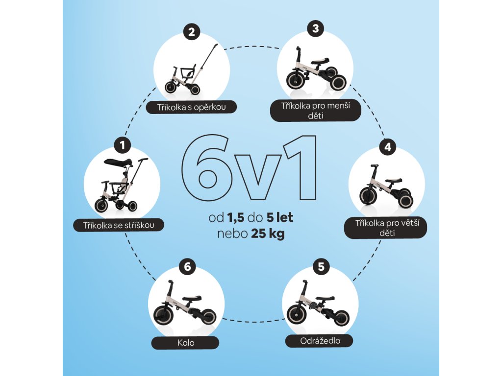 • Kompletní řešení v jednom – tříkolka, odrážedlo i kolo
