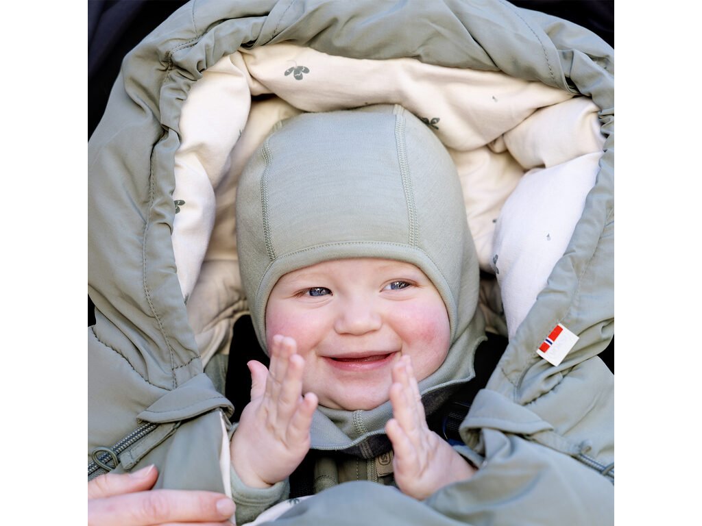 jednoduché nastavení otvoru hlavy kolem hlavy dítěte, aby se přizpůsobil povětrnostním podmínkám