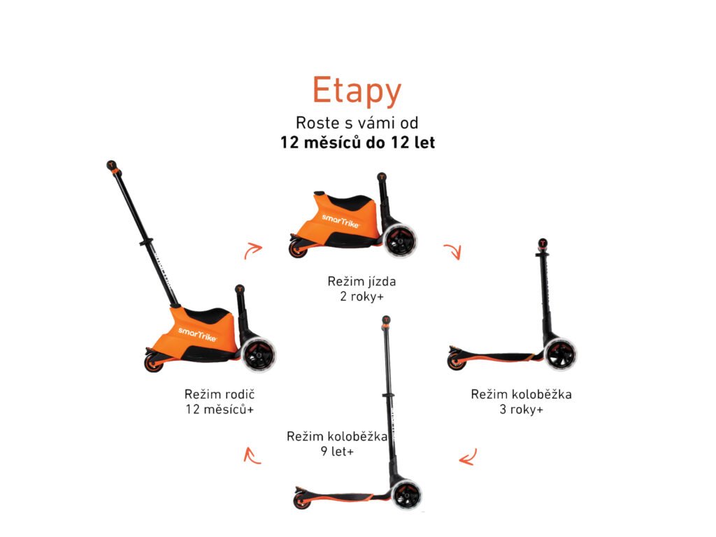 unikátní multifunkční koloběžka určená dětem od 12 měsíců do 12 let
