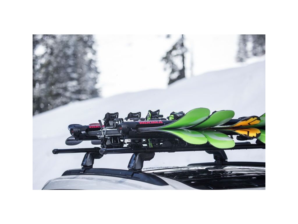 Exkluzívní nosič na 6 párů lyží nebo 4 snowboardy, uchycení lyží mezi těsnící gumy. Černá barva.