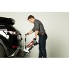 | Řemínky k upevnění kol jízdního kola na držácích kol jsou nastavitelné do 2 poloh, což umožňuje přepravit různé velikosti jízdních kol od malých dětských až po velká horská kola. Samozřejmostí je sklopení nosiče i s naloženými koly, abyste se dostali do zavazadlového prostoru. | |