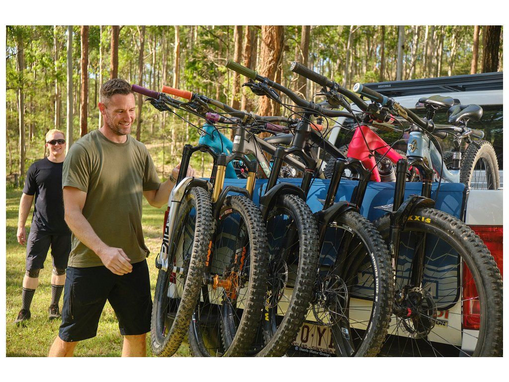 Robustní nylonová podložka na zadní čelo Pick-upů pro 6 jízdních kol ve stylovém provedení. Barva černá.