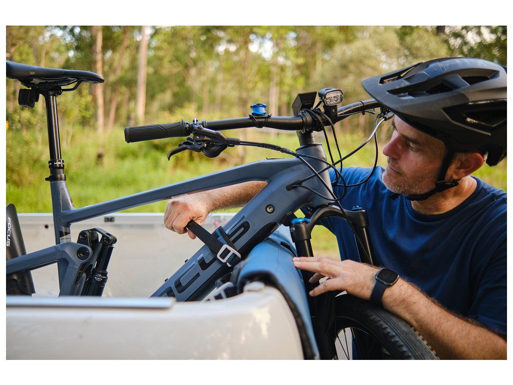 Odolný nylon chrání Vaše jízdní kola a měkká plstěná podložka chrání lak na dveřích zavazadlového prostoru vozidla. Držák pojme 6 jízdních kol. Jízdní kola pevně zajišťují řemínky se sponou a polstrované kolébky.
