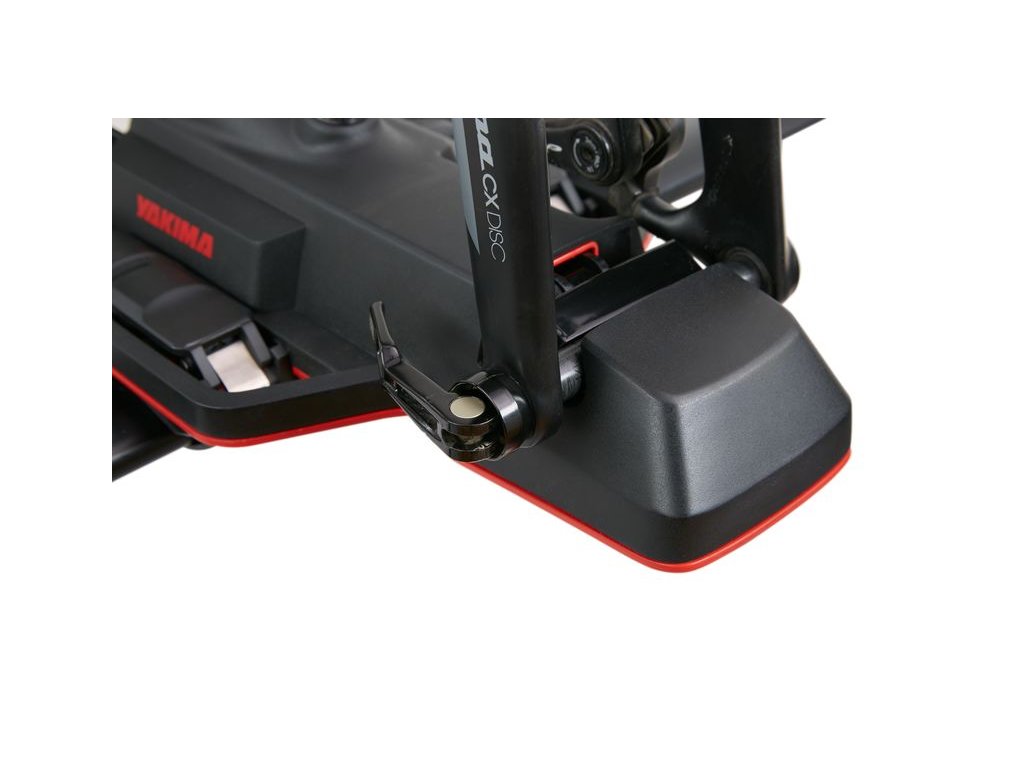 Uchycení kola k cyklonosiči Patentovaný nastavitelný systém uchycení přední vidlice jízdního kola k cyklonosiči Yakima Highspeed se přizpůsobí jakémukoliv rozměru vidlice jízdního kola. |