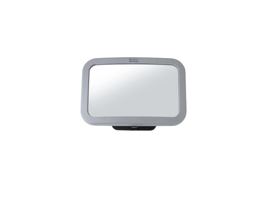 Zpětné zrcátko pro dětskou autosedačku, která je upoutaná proti směru jízdy, je připevněno na otáčivém kloubu, který poskytuje rozšířený výhled na dítě v jakémkoliv úhlu.