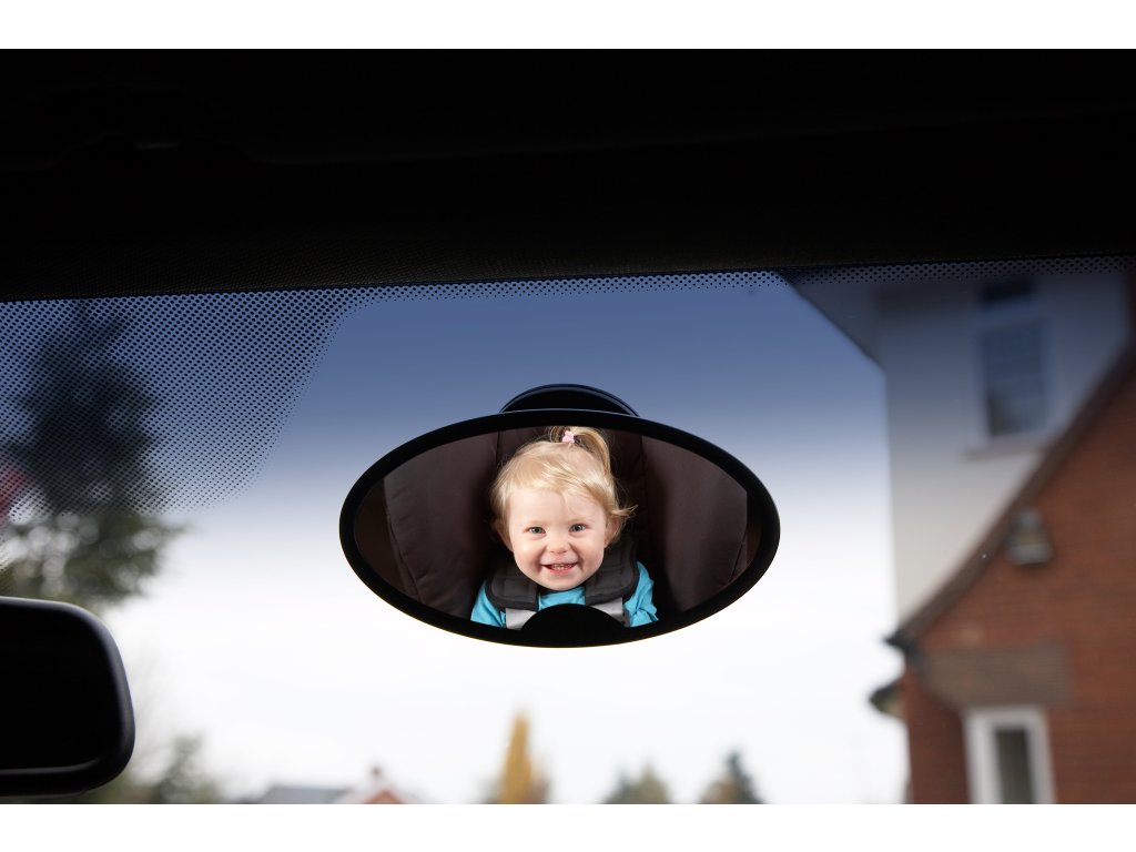 Ke sledování miminka v autosedačce uputané v proti směru jízdy, umístěte zrcátko tak, aby Vám umožnilo sledovat dítě skrze zpětné zrcátko automobilu nebo použíte druhé zrcátko.